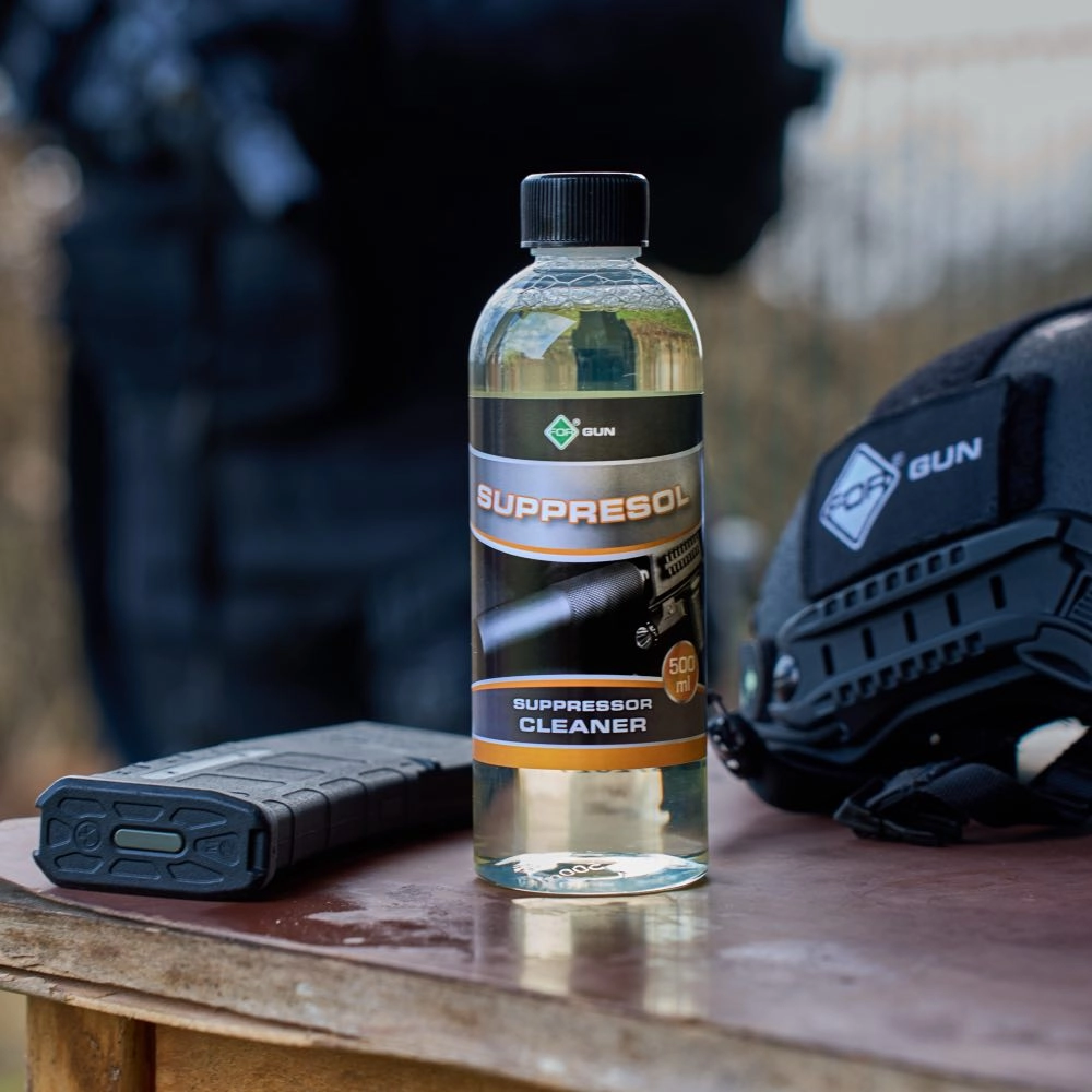 Suppressol eignet sich sowohl für den regelmäßigen Pflegeeinsatz als auch für die intensive Reinigung stark beanspruchter Schalldämpfer und ergänzt das Sortiment professioneller Waffenpflegemittel ideal.